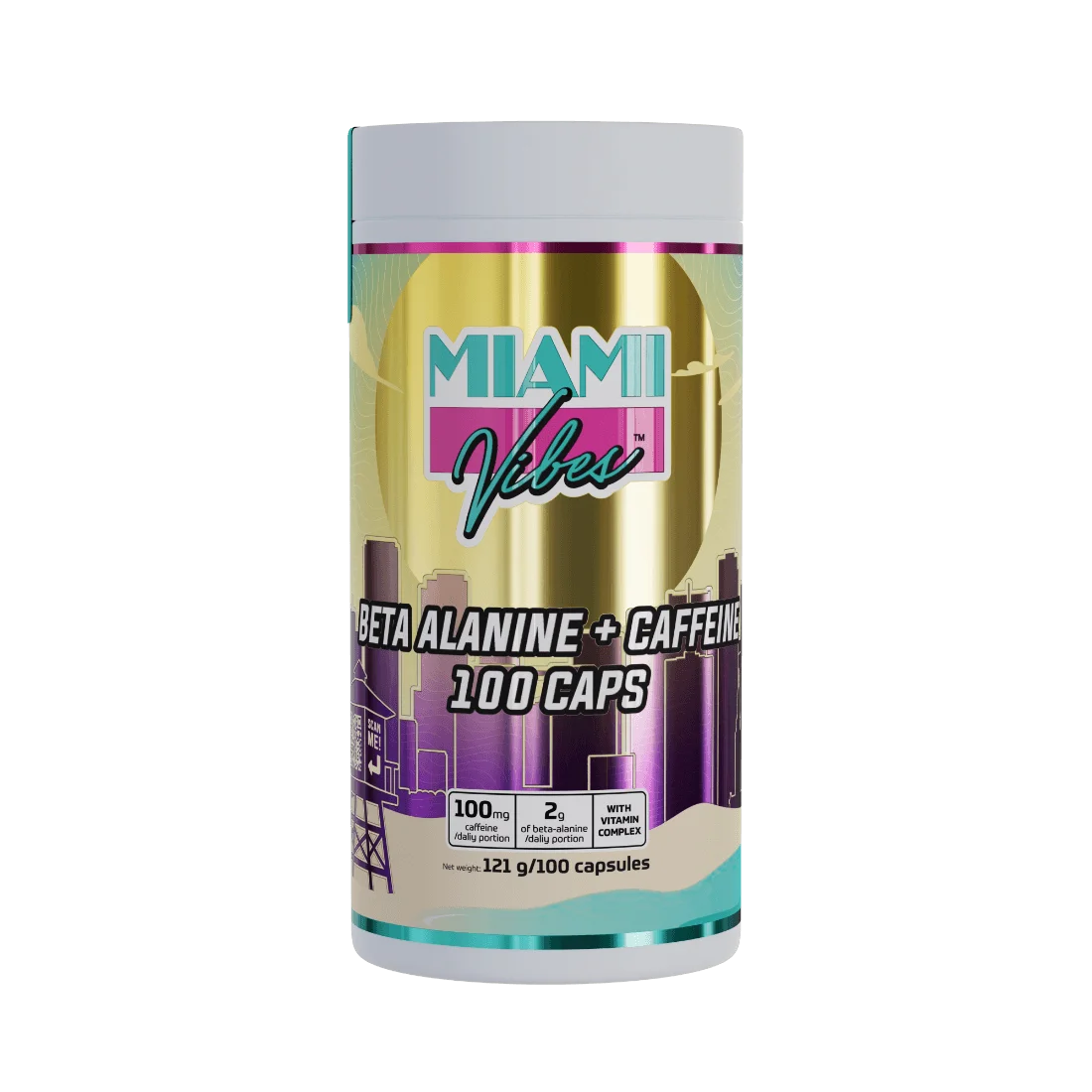 Béta-alanin, maltodextrin, kapszulahéj (zselatin), vízmentes koffein, L-aszkorbinsav (C-vitamin), csomósodást gátló anyagok (szilícium-dioxid, ortofoszforsav kalciumsói), DL-alfa-tokoferil-acetát (E-vitamin), nikotinamid, cianokobalamin (B12-vitamin), kalcium-D-pantotenát, piridoxin-hidroklorid (B6-vitamin), tiamin-hidroklorid (B1-vitamin), riboflavin (B2-vitamin), D-biotin.